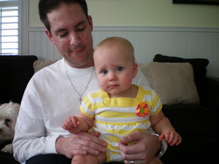 On Friday we headed up to Orange County for a visit with my family. We enjoy going up there for many reasons, but we really like that we have family that just love up on Kayden. There is a line to hold her, feed her, and even change her! Scotty and I can sit back and just laugh at everyone competing for time with Kayden! This trip Nick even got in on it! He has been a little apprehensive around her, probably because she is still so small and seems ‘breakable.’ We have tried to assure him that if we haven’t broken her yet, it isn’t possible. He says when she is able to walk around and fall down that he will play with her more. But this trip he spent time with her on the couch making her smile. Her smile is infectious and can melt anyone’s heart!! All in all, we had a nice time with family.