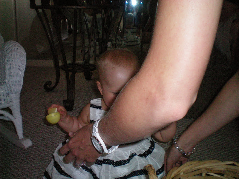 Also, now that she can/will sit, she can sit in a shopping cart! For all moms out there, this is a HUGE step! No more car seats awkwardly teetering in the shopping cart or inconveniently placed in the large part of the cart. She can see the world and therefore is happier about shopping — every mother’s dream! Today was her first outing in the shopping cart at Costco (now that we’re eating again, it was time to stock up!). All was going well until she threw herself backwards and nearly out of the cart! Luckily, her father caught her… and her mother was down another isle!! Miss Kloey wants so badly to be mobile, but without carpet and constantly rolling off my makeshift blanket play area, she isn’t quite there yet. I’m hoping this will happen soon!