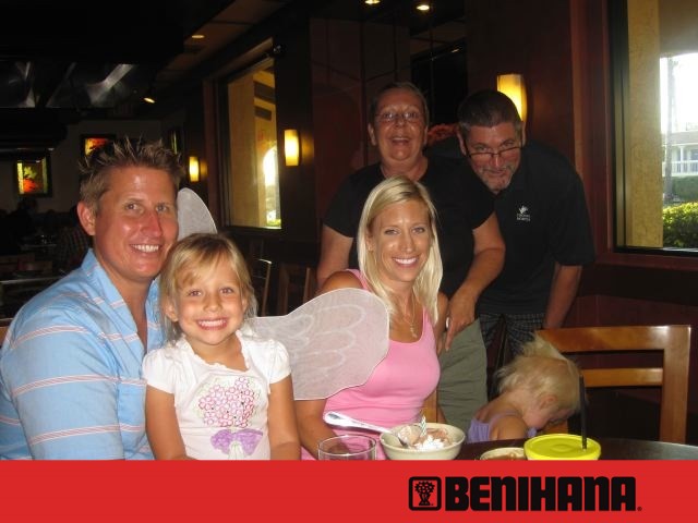 Tonight we went to dinner at my MOST FAVORITE restaurants ever — Benihana! For as long as I can remember, I have loved going to Benihana’s. I request it for every birthday, anniversary, or any special occasion. This birthday was no different! This year my parents – Mimi and Gampy- took the girls, Scotty, and me to my happy place!! We had a great time and the girls did great!! This picture is a perfect synopsis of the night. Kayden sat nicely and ate her dinner. Kloey, as seen in this picture devouring her ice cream and refusing to come up for a picture, marched to her own beat and did as she pleased! Hey, at least she was quiet!! We had a wonderful dinner! Thanks Mimi and Gampy for a perfect birthday dinner!!